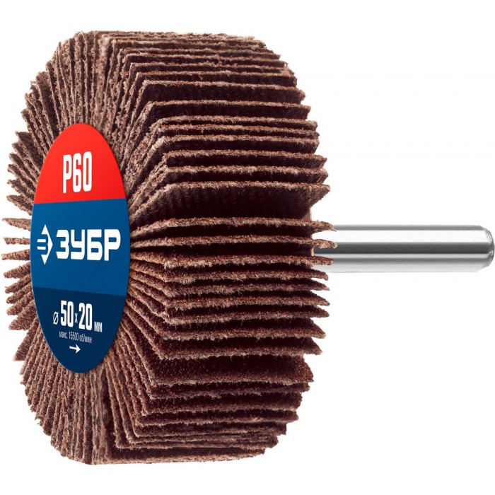Круг шлифовальный лепестковый d 50 x 20 мм, P60, на шпильке d 6 мм ЗУБР Профессионал 36601-060_z01