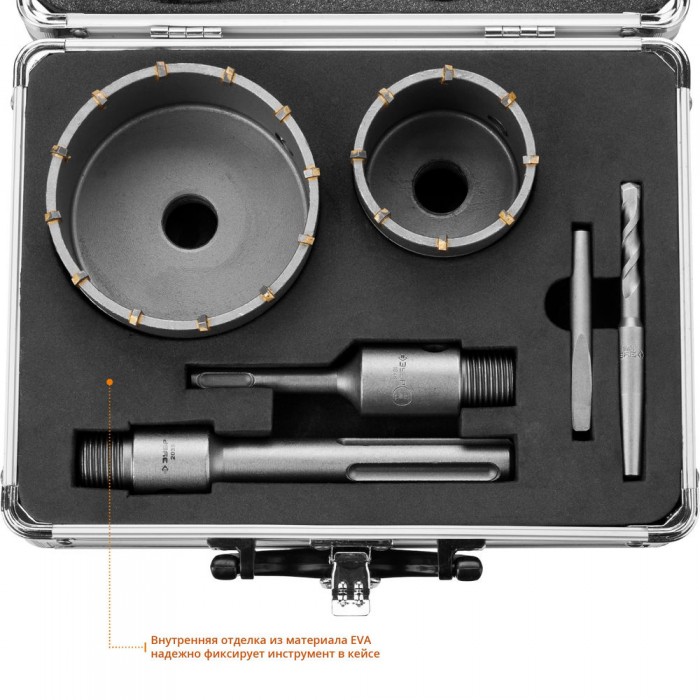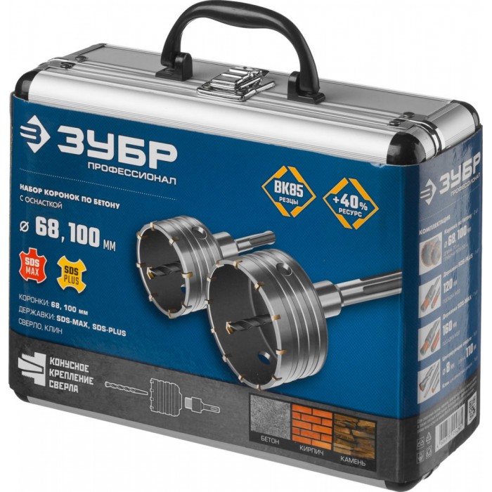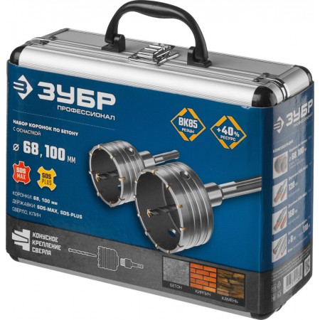 Набор коронок по бетону с оснасткой d 68, 100 мм, Alu-кейс ЗУБР Профессионал 29185-H2-2
