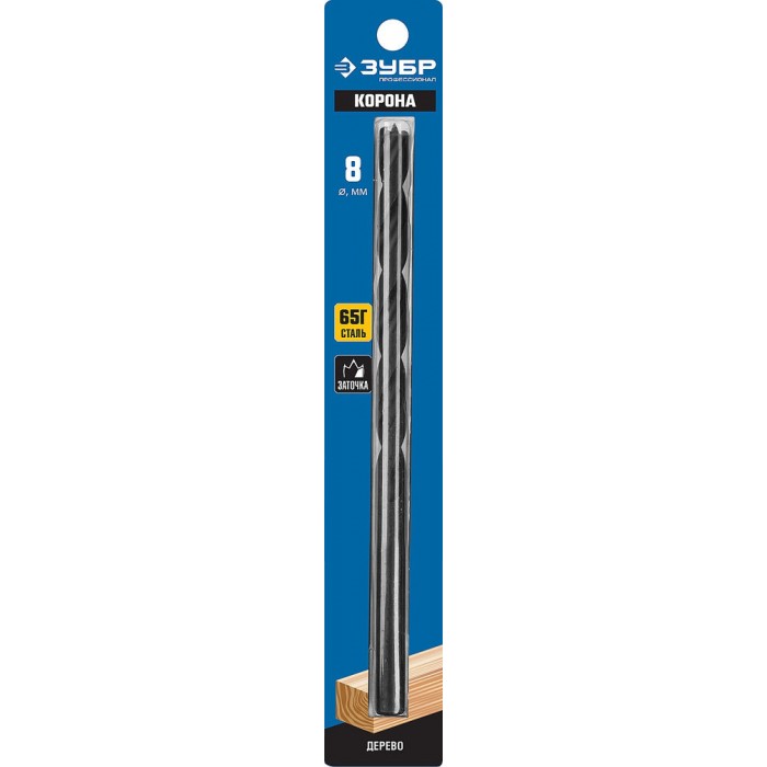 Сверло по дереву спиральное d 8 x 200/150 мм, М-образная заточка ЗУБР Профессионал 29421-200-08_z01
