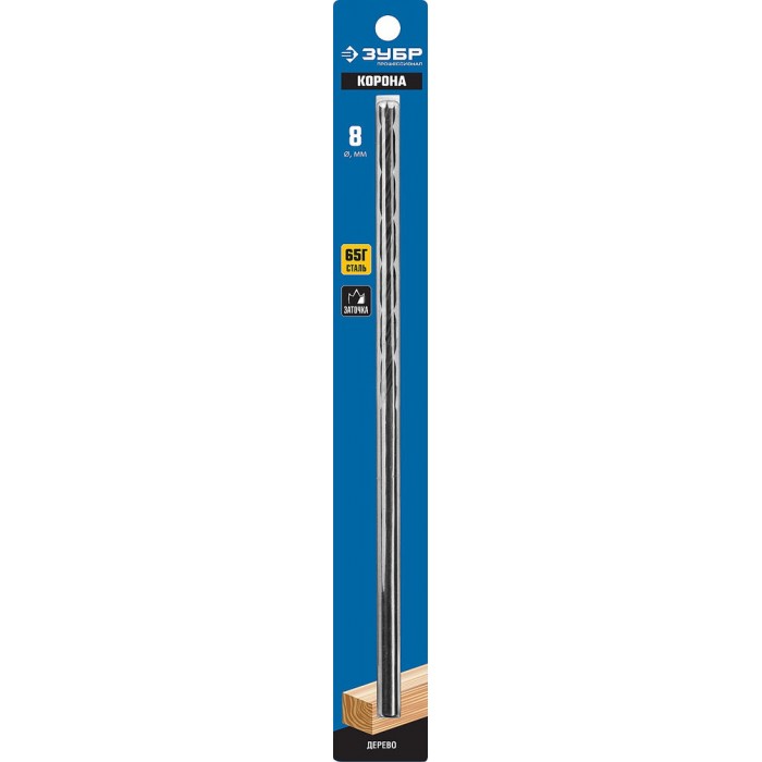 Сверло по дереву спиральное d 8 x 300/150 мм, М-образная заточка ЗУБР Профессионал 29421-300-08_z01