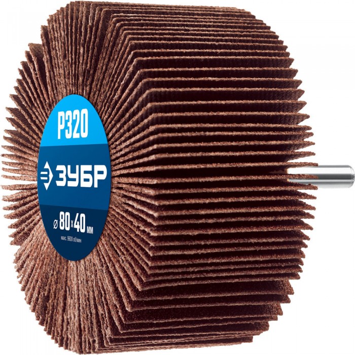 Круг шлифовальный лепестковый d 80 x 40 мм, P320, на шпильке d 6 мм ЗУБР Профессионал 36604-320_z01