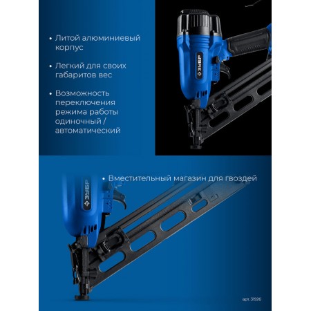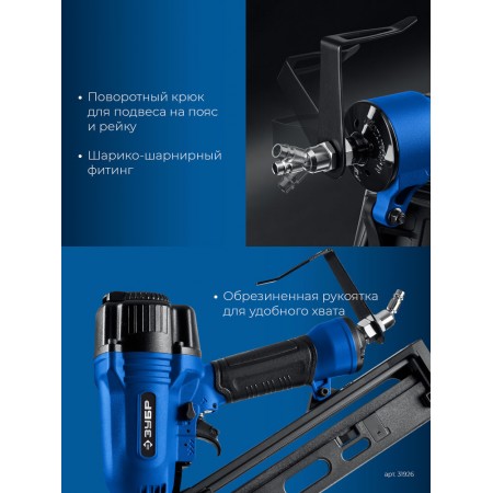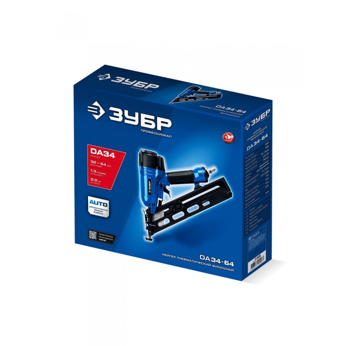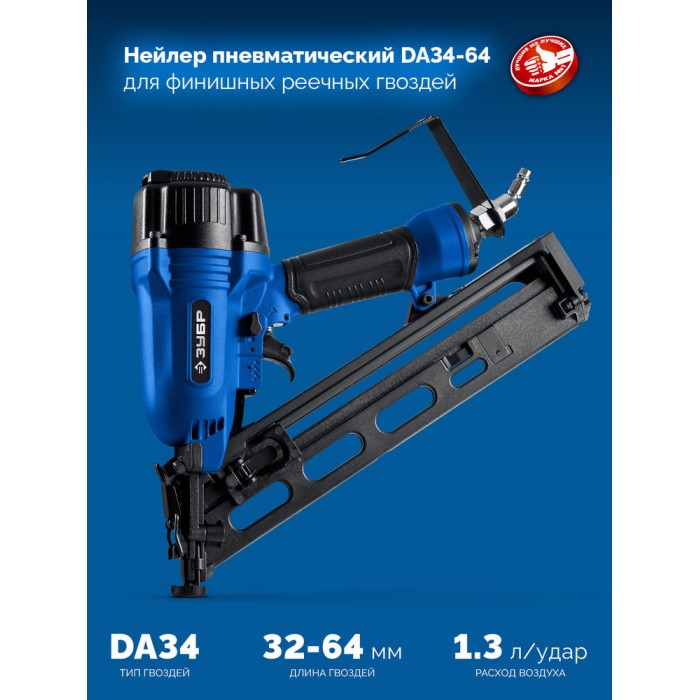 Нейлер пневматический финишный DA34-64 для реечных гвоздей 15Ga, 32–64 мм ЗУБР Профессионал 31926