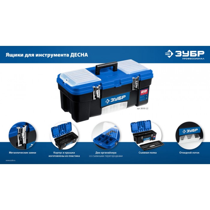 Ящик 508 x 256 x 225 мм 20" пластиковый для инструментов ЗУБР ДЕСНА-20 38181-20