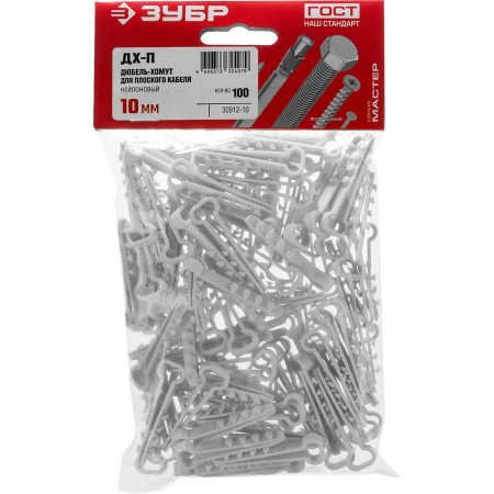 Дюбель-хомут для плоского кабеля ДХ-П 10 мм, нейлон, 100 шт ЗУБР 30912-10