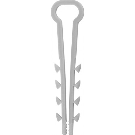 Для быстрого монтажа кабелей, проводов, труб ПВХ, гофрорукавов и т.п. к полнотелым основаниям (бетон, кирпич, природный камень). Порядок установки: 1. Высверливается отверстие диаметром 6 мм. 2. Провода охватываются дюбель-хомутом. 3. Дюбель-хомут с проводами вставляется рукой в отверстие до упора.