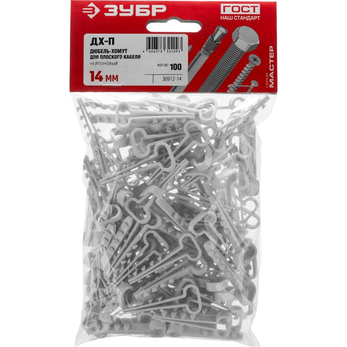 Дюбель-хомут для плоского кабеля ДХ-П 14 мм, нейлон, 100 шт ЗУБР 30912-14