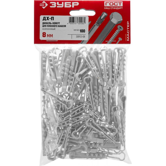 Дюбель-хомут для плоского кабеля ДХ-П 8 мм, нейлон, 100 шт ЗУБР 30912-08