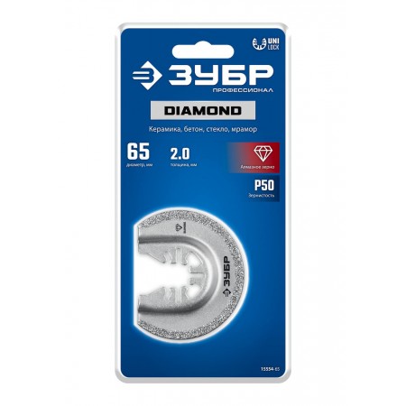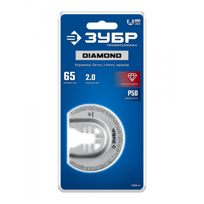 Полотно пильное DIAMOND 65 x 2.0 мм с алмазным зерном Р50: керамика, бетон, кирпич ЗУБР UniLock 15554-65