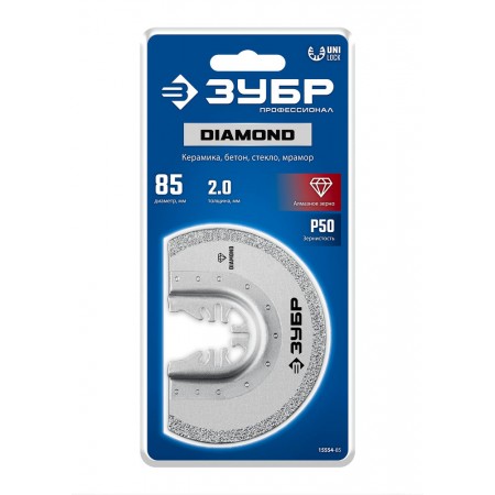 Полотно пильное DIAMOND 85 x 2.0 мм с алмазным зерном Р50: керамика, бетон, кирпич ЗУБР UniLock 15554-85