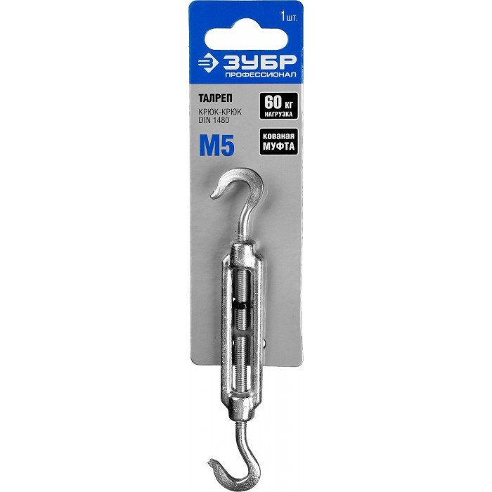 ЗУБР DIN 1480, М5, кованая натяжная муфта, 1 шт, талреп крюк-крюк, Профессионал (304366-05)