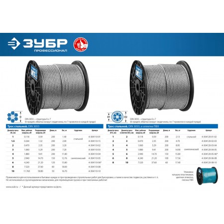 Стальной трос в оплетке ПВХ 1 (2) мм, L 200 м, свивка 6 x 7 + IWS ЗУБР DIN 3055 Профессионал 4-304120-01-02