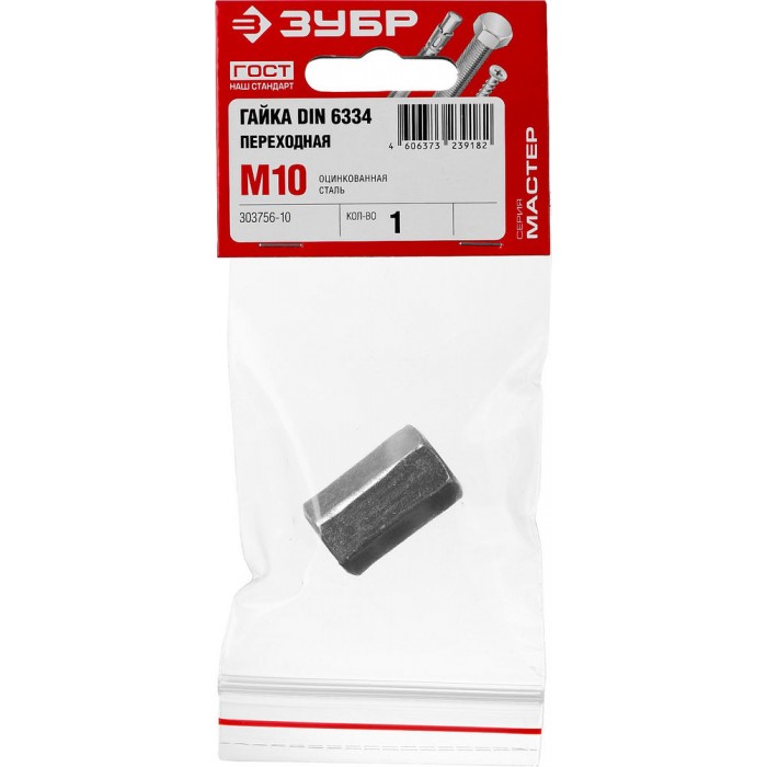Переходная гайка M10, цинк, 1 шт ЗУБР DIN 6334 303756-10