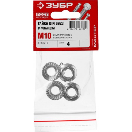 Гайка с фланцем M10, кл. пр. 6, цинк, 4 шт ЗУБР DIN 6923 303636-10