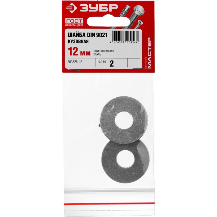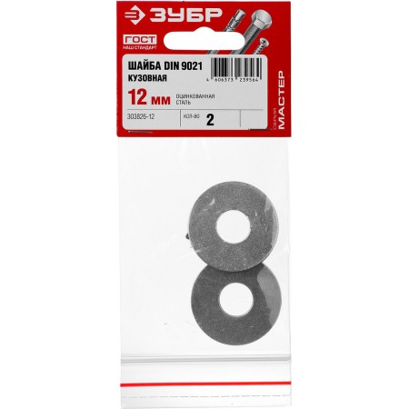 Кузовная шайба 12 мм, цинк, 2 шт ЗУБР DIN 9021 303826-12