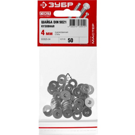 Кузовная шайба 4 мм, цинк, 50 шт ЗУБР DIN 9021 303826-04