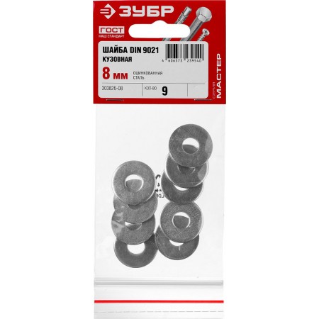 Кузовная шайба 8 мм, цинк, 9 шт ЗУБР DIN 9021 303826-08