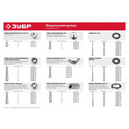 Самостопорящаяся гайка с нейлоновым кольцом M3, кл. пр. 6, цинк, 5 кг ЗУБР DIN 985 303580-03