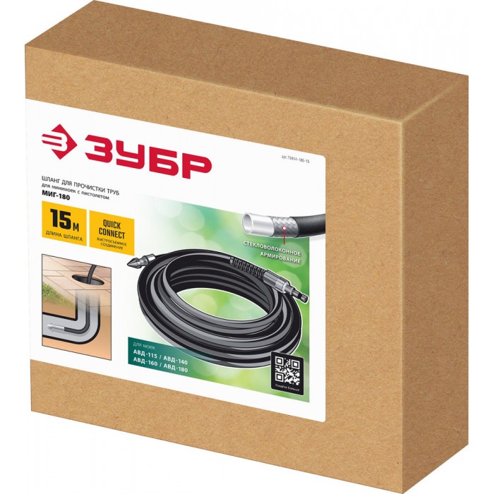Шланг для прочистки труб для пистолета МИГ-180 15 м ЗУБР 70414-180-15