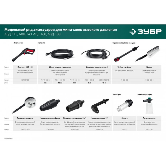 Качественные комплектующие для расширения функциональности моек ЗУБР