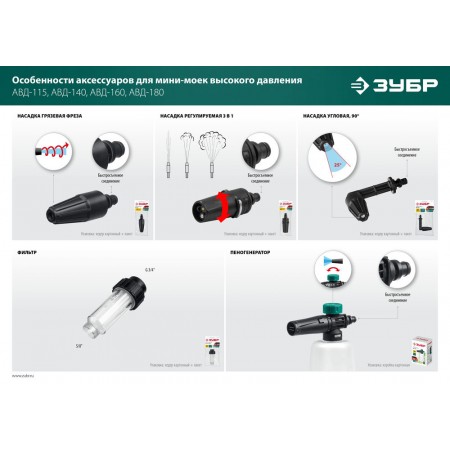 Качественные комплектующие для расширения функциональности моек ЗУБР