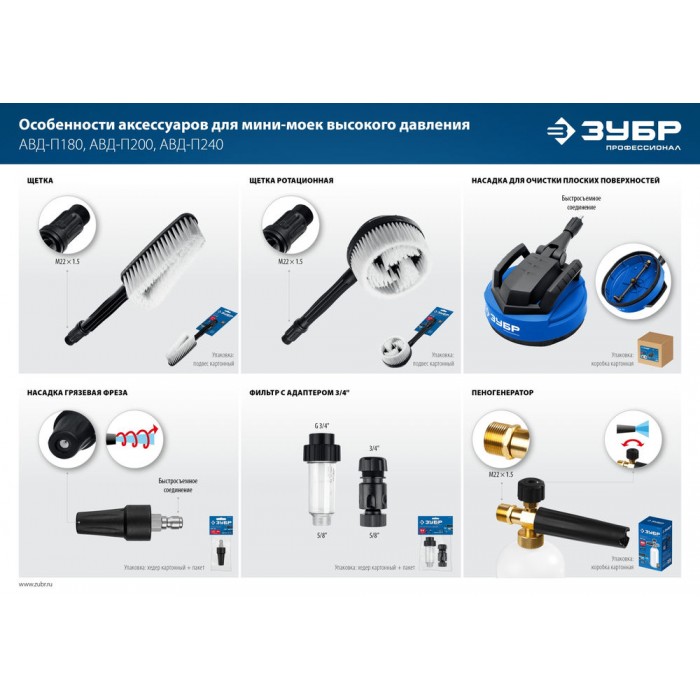 Качественные комплектующие для расширения функциональности моек ЗУБР
