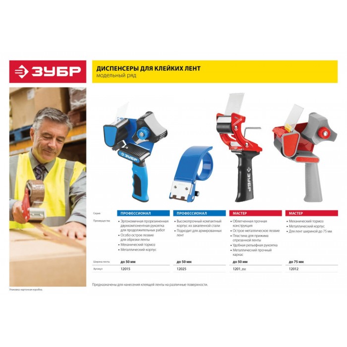 Обеспечивает удобство и комфорт при работе с клеящими лентами, облегчает и ускоряет работу. Снабжен металлическим лезвием для обрезки ленты, имеет эргономичную прорезиненную рукоятку и пластину для прижима отрезанной ленты. Оснащен металлическим каркасом, обеспечивающим высокую прочность изделия и длительный срок службы. Механический тормоз позволяет регулировать натяжение ленты.