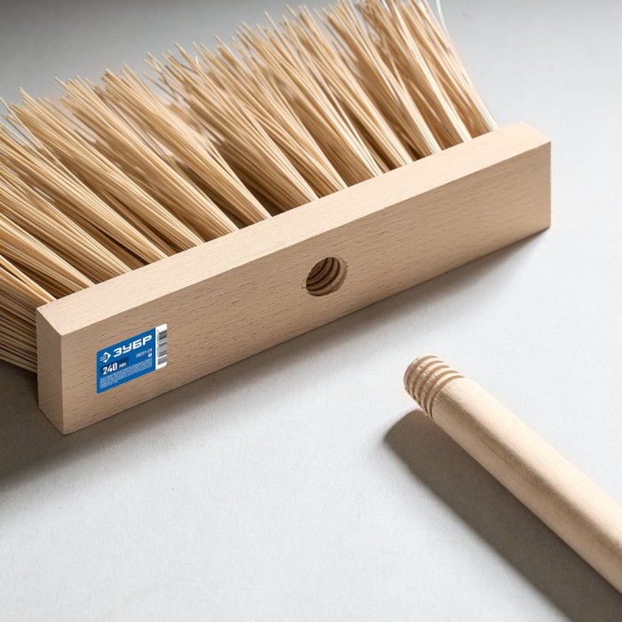 Метла с черенком ДОКА буковая колодка 24 см, шлифованный берёзовый черенок 120 см d 22 мм, щетина 120 мм, 3-рядная ЗУБР 39231-24_z01
