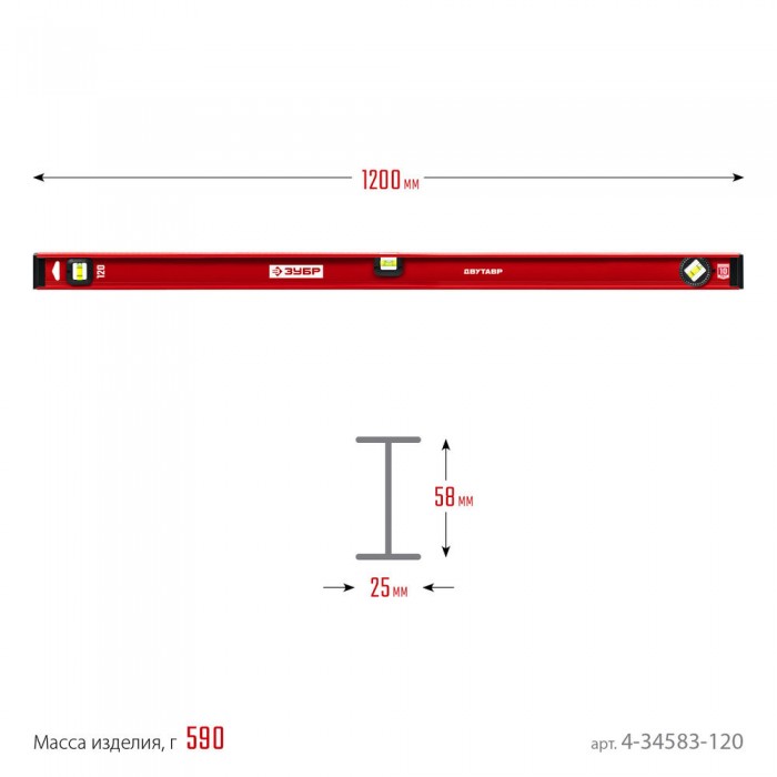 Уровень двутавровый с усиленным профилем 1200 мм ЗУБР ДВУТАВР 4-34583-120_z01