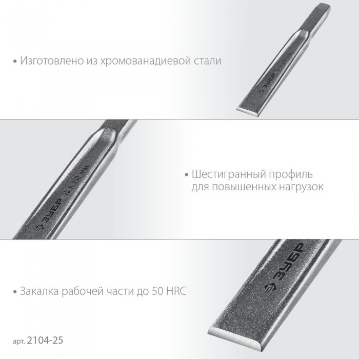 Усиленное зубило. Двутавровый профиль для усиления конструкции. Хромированное покрытие защищает от коррозии.