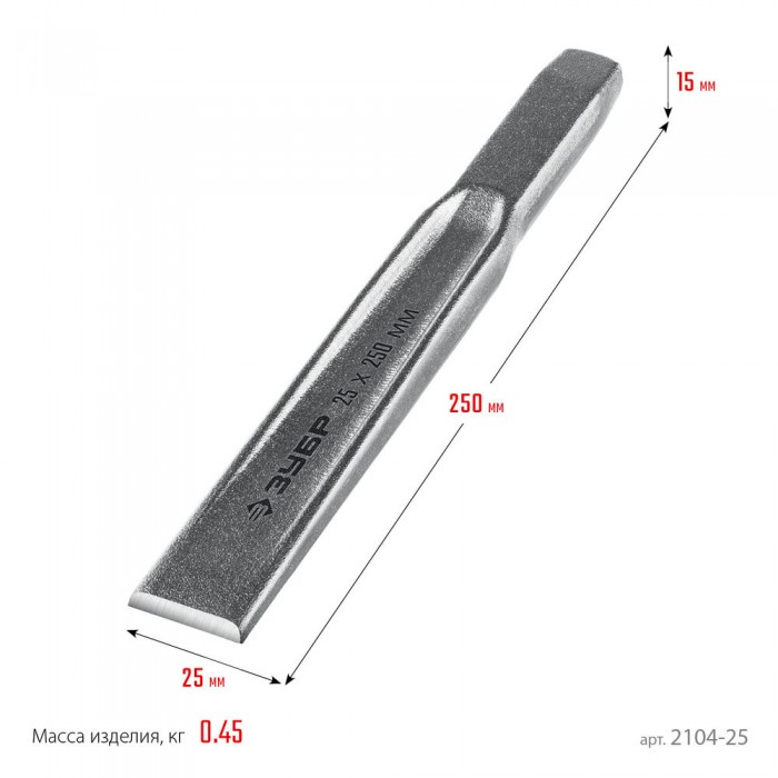 Зубило слесарное двутавровое усиленное по металлу 25 x 250 мм ЗУБР Двутавр Профессионал 2104-25