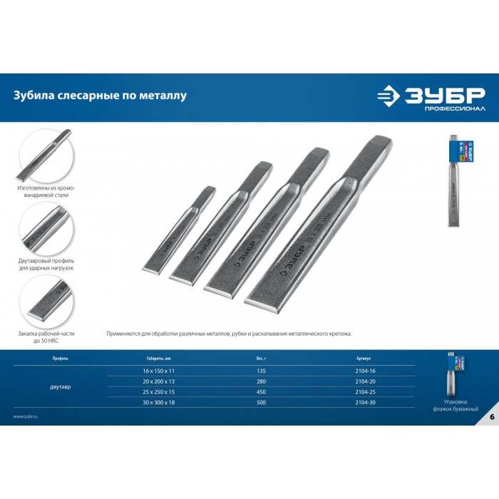 Усиленное зубило. Двутавровый профиль для усиления конструкции. Хромированное покрытие защищает от коррозии.