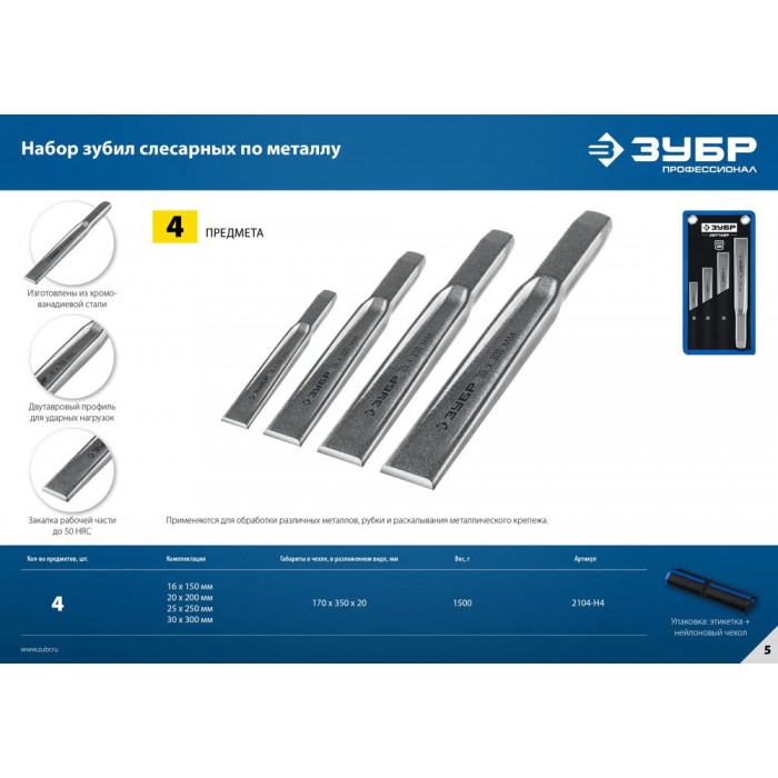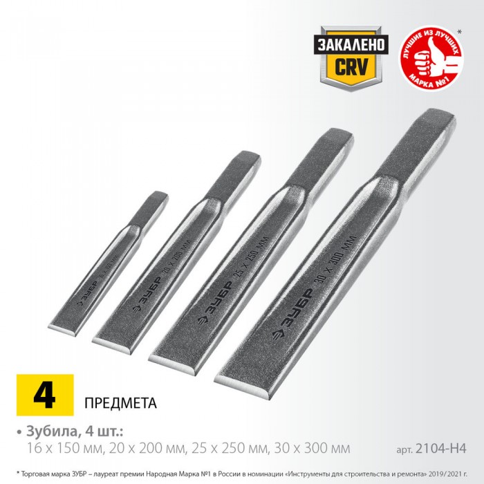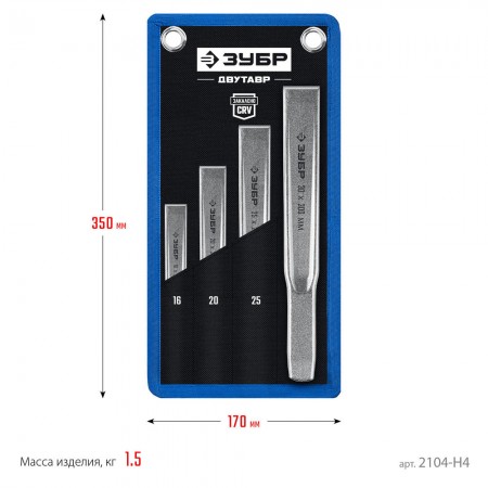 Набор слесарных зубил по металлу Двутавр 4 шт ЗУБР Профессионал 2104-H4