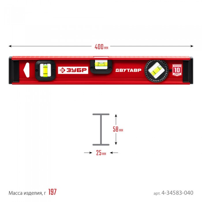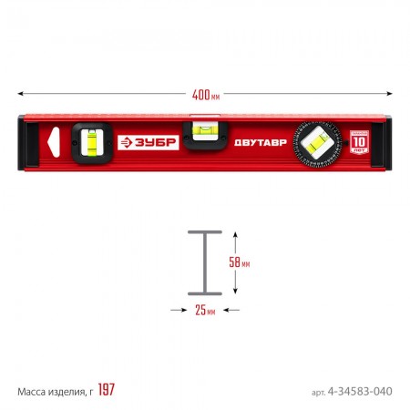 Уровень двутавровый с усиленным профилем 400 мм ЗУБР ДВУТАВР 4-34583-040_z01