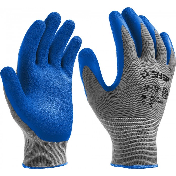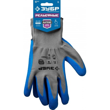 Перчатки ЭКСПЕРТ с тонким рельефным латексным покрытием, противоскользящие, 15 класс, размер L (9) ЗУБР Профессионал 11274-L_z01