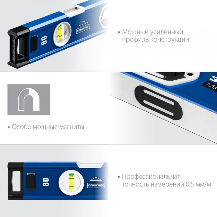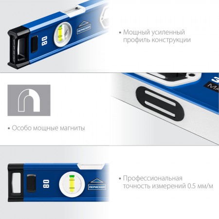 Магнитный мощный уровень с удобными рукоятками и фрезерованной базовой поверхностью
