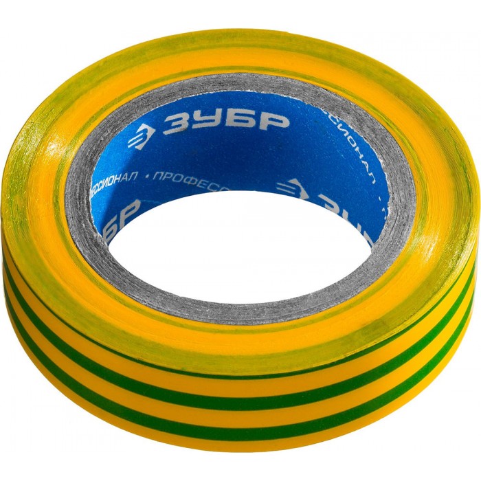 Изолента ПВХ ЭЛЕКТРИК-10 15 мм x 10 м, 6000 В, желто-зеленая, не поддерживает горение ЗУБР Профессионал 1233-6_z02