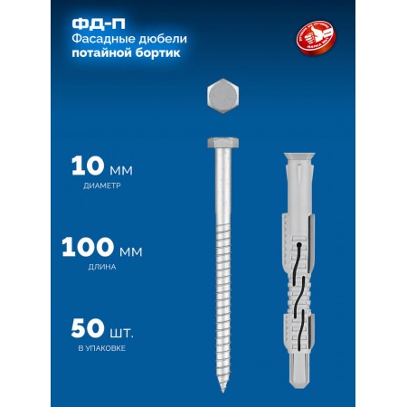 Дюбель фасадный ФД-П 10 x 100 мм, нейлон/цинк, 50 шт ЗУБР 301475-100
