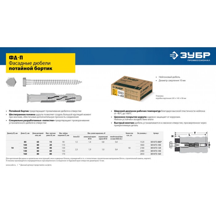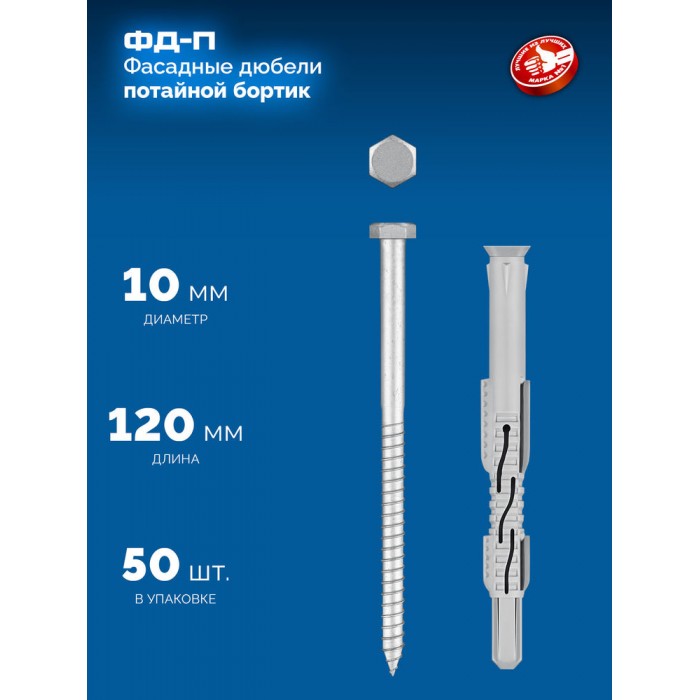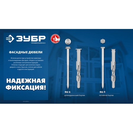 Дюбель фасадный ФД-П 10 x 120 мм, нейлон/цинк, 50 шт ЗУБР 301475-120