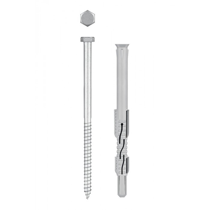 • Нейлон устойчив к воздействию влаги. Цинковое покрытие шурупа надежно защищает от коррозии.