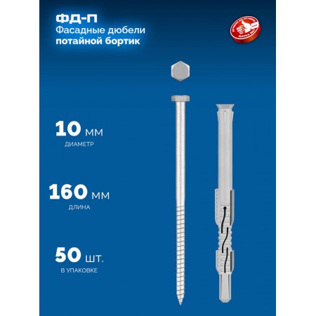 Дюбель фасадный ФД-П 10 x 160 мм, нейлон/цинк, 50 шт ЗУБР 301475-160