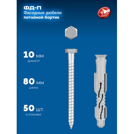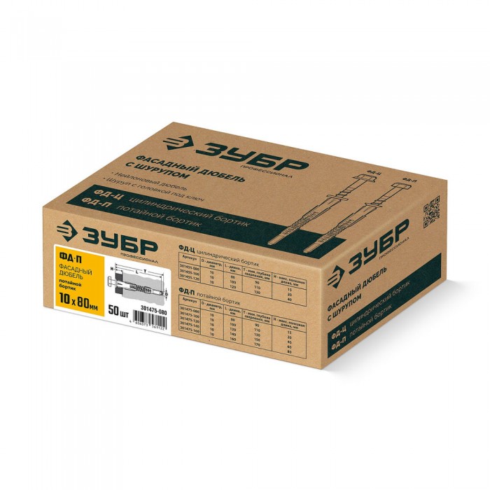 Дюбель фасадный ФД-П 10 x 80 мм, нейлон/цинк, 50 шт ЗУБР 301475-080