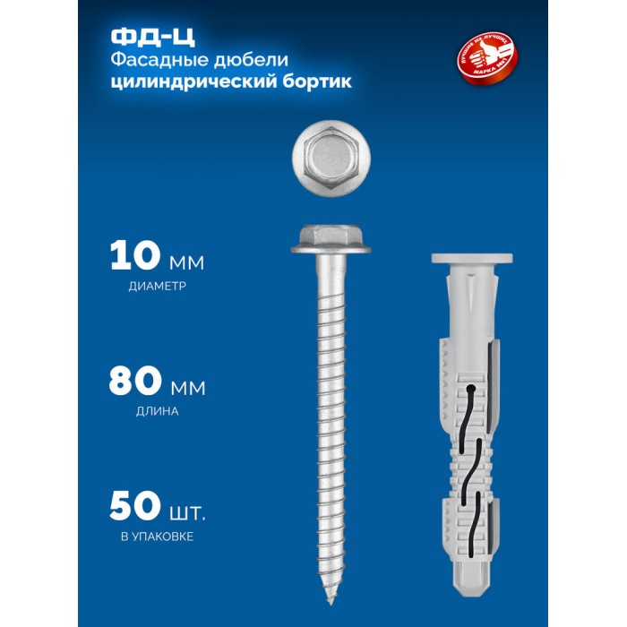 Дюбель фасадный ФД-Ц 10 x 80 мм, нейлон/цинк, 50 шт ЗУБР 301455-080