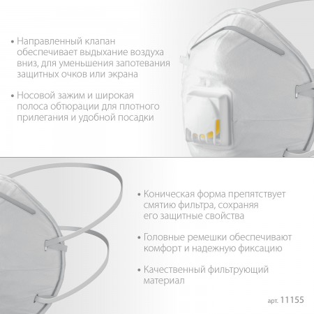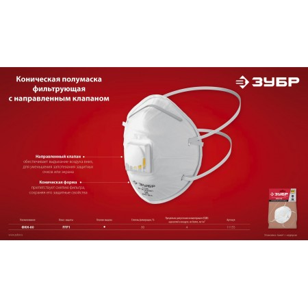 ЗУБР ФКН-80, класс защиты FFP1, коническая, фильтрующая полумаска с направленным клапаном выдоха (11155)