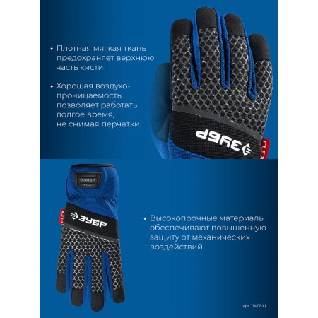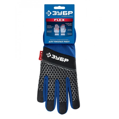 Перчатки комбинированные FLEX р.XL (10), синие, работа с сенсорными экранами ЗУБР Профессионал 11477-XL
