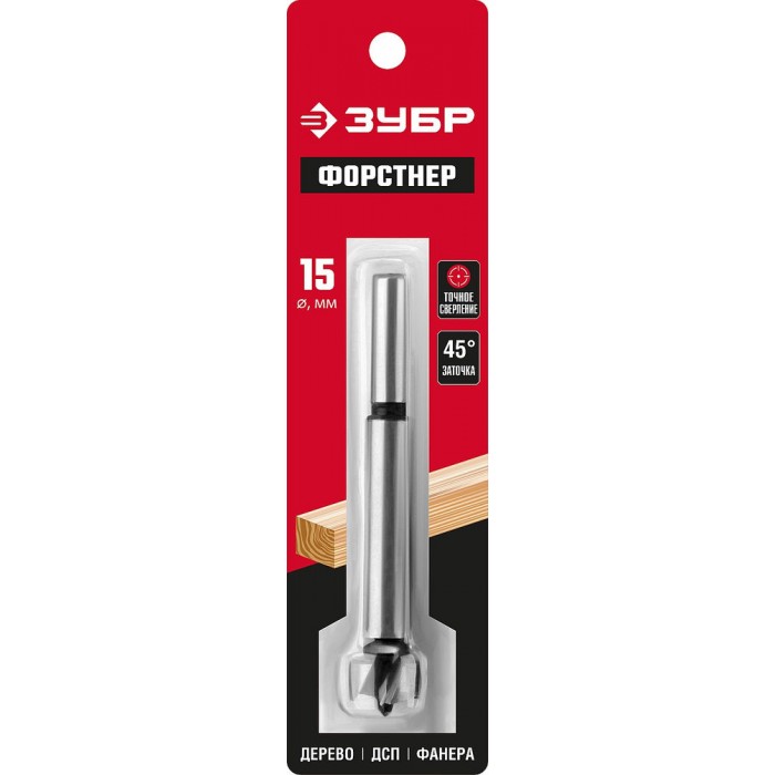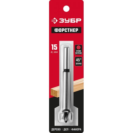 Сверло Форстнера 15 x 90 мм по дереву, фанере, ДСП ЗУБР Форстнер 2993-15_z01