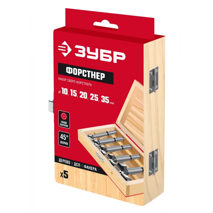 ЗУБР Форстнер 5 шт: 10-15-20-25-35 мм, набор сверл Форстнера по дереву, фанере, ДСП (2994-H5_z01)