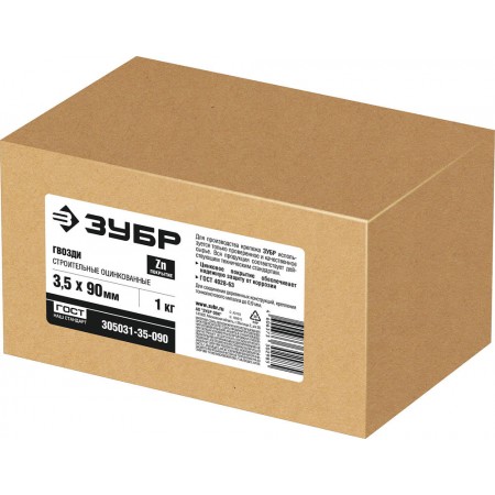 Гвозди строительные 90 x 3.5 мм, цинк, 1 кг, ГОСТ 4028-63 ЗУБР 305031-35-090