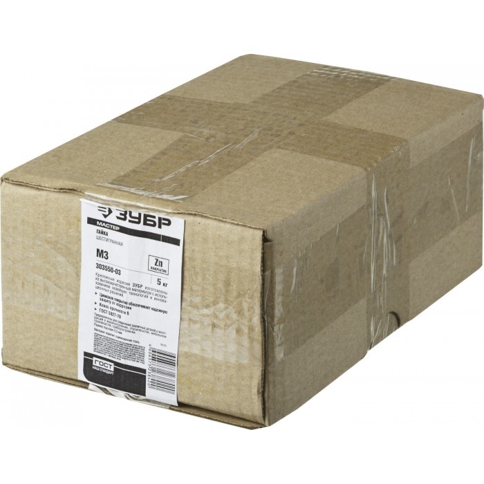 ЗУБР ГОСТ 5927-70, кл. пр. 6, M3, цинк, 5 кг, шестигранная гайка (303550-03)