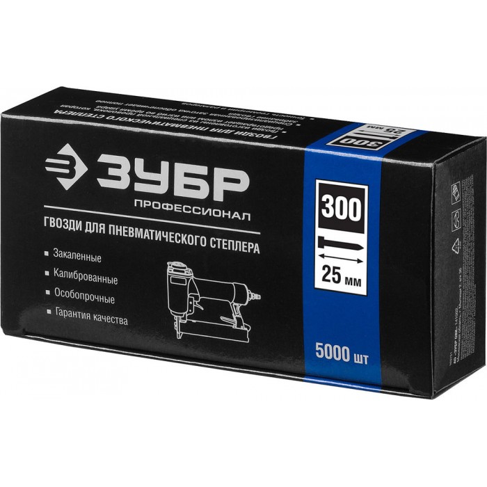 Гвозди строительные тип 300 (47/J/F) 25 мм, калибр 18GA, 5000 шт ЗУБР Профессионал 31830-25