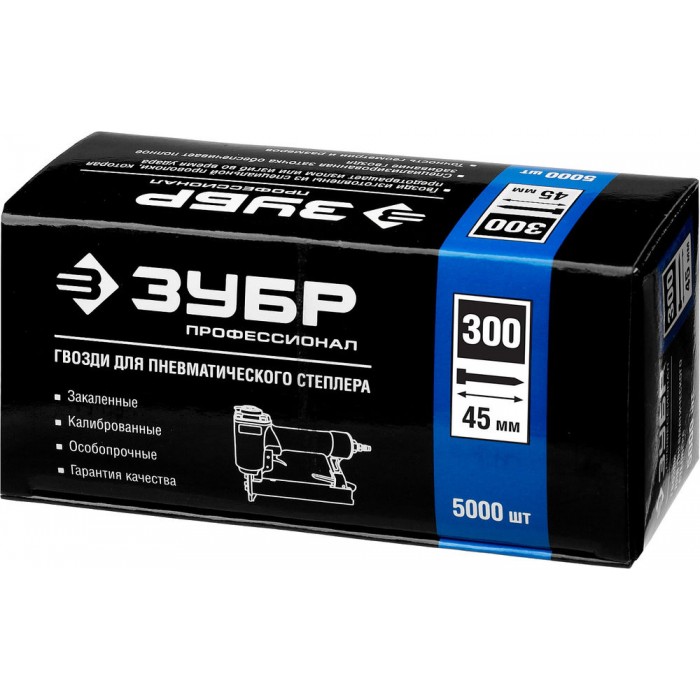 Гвозди строительные тип 300 (47/J/F) 45 мм, калибр 18GA, 5000 шт ЗУБР Профессионал 31830-45